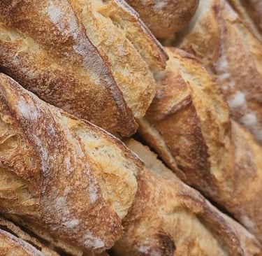 Trabajamos con panadería artesanal, horneado diario, crujiente y con buena estructura.