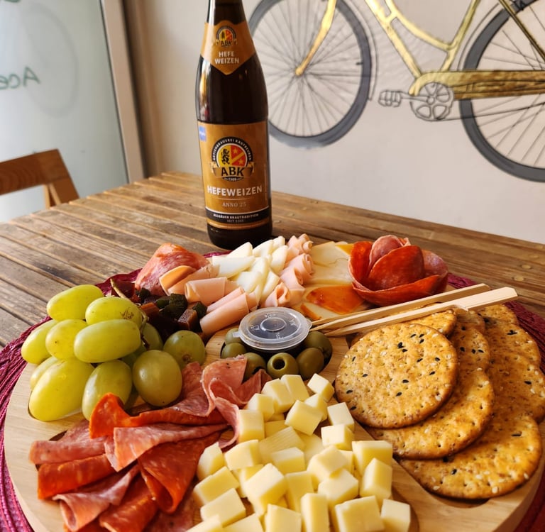 Variedad de quesos, charcutería, vinos, cervezas artesanales