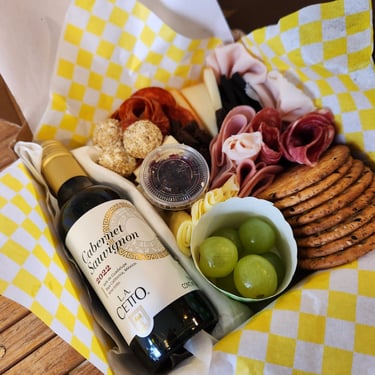 Cliente nuevo: Detalles elegantes, como una tabla pequeña con vino o un set gourmet.
